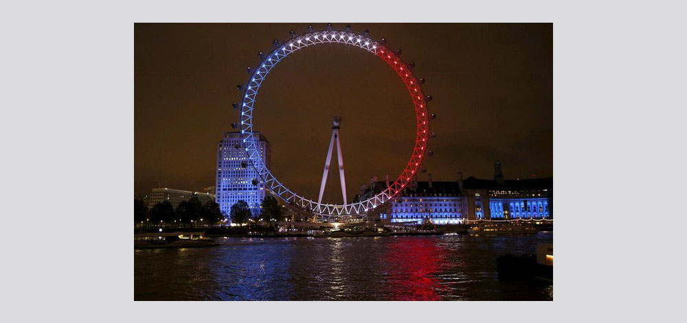 تضامنت العشرات من أشهر معالم العالم، مع الفرنسيين إثر الهجمات الإرهابية التي ضربت العاصمة باريس، وخلفت قرابة 200 قتيل، فقد تزينت تلك المعالم بألوان العلم الفرنسي.