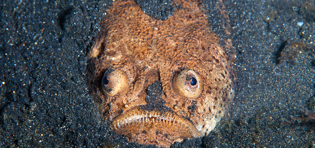 صورة ليلية من منطقة منادو في إندونيسيا لسمكة في حال ترقب للصيد.