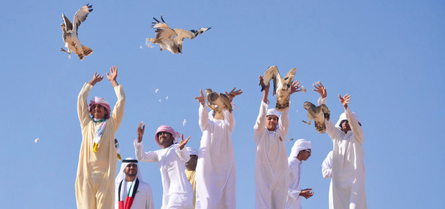 للسنة الثالثة على التوالي، يحتفل الصندوق الدولي للحفاظ على الحبارى باليوم الوطني وذكرى قيام الاتحاد بإطلاق عدد من طيور الحبارى، بعدد سنوات الاتحاد، وبحلقات تحمل ألوان علم الإمارات، وتم في هذا العام إطلاق 44 حبارى بالمنطقة الشرقية لإمارة أبوظبي.