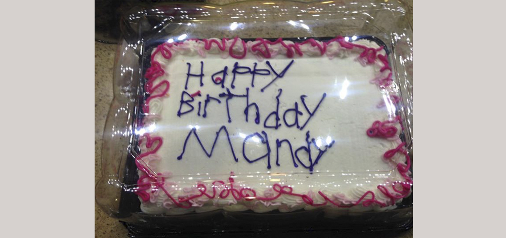 أثارت صورة نشرتها سيدة تدعى "ليزا" على موقع "فيس بوك" ضجة كبيرة تظهر كعكة كتب عليها عبارة بخط رديء جدا ، وكانت السيدة طلبت من إحدى العاملات بالمخبز كتابة عبارات تهنئة على الكعكة، لتظهر الكتابة بشكل غير منسق فما كان من الزبونة إلا أن شكرت العاملة ومضت لدفع ثمن الكعكة ، إلا أن الأمر أثار ضحك الزبونة التي أبدت استغربها من خط عاملة المخبز المتعرج .