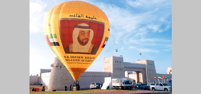 شاركت جمعية «كلنا الإمارات» بعروض لمنطاد «خليفة القائد» المتوّج بصورة صاحب السمو الشيخ خليفة بن زايد آل نهيان، رئيس الدولة، في «مسيرة الاتحاد» التي نظمتها وزارة شؤون الرئاسة، أول من أمس، ضمن فعاليات مهرجان الشيخ زايد التراثي 2015 بمنطقة الوثبة في أبوظبي، بمناسبة اليوم الوطني الـ44.