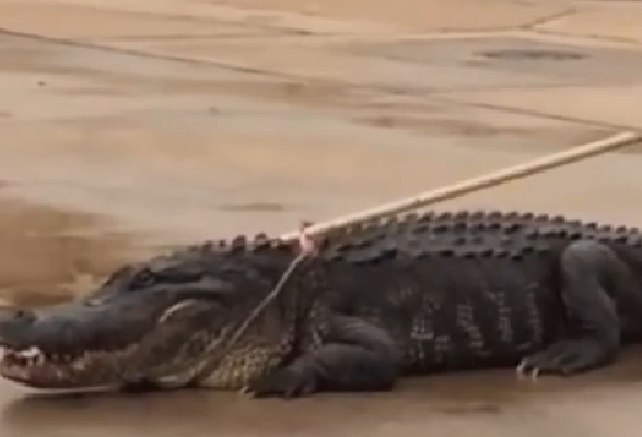 حاول الهرب من الشرطة..فوقع في فم تمساح
