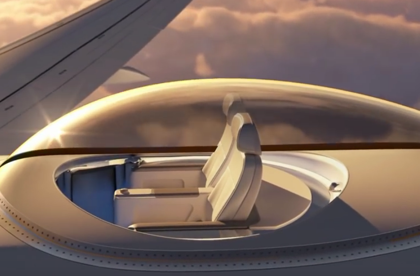 ابتكرت احدى الشركات كبسولة زجاجية أطلقت عليها" مقعد السماء" والذي يتيح للمسافر الجلوس على مقاعد مخصصة في الدور العلوي للطائرة، ذات سقف زجاجي يسمح بمشاهدة بانورامية للسحب خلال السفر، ذلك حسب مانقلته مواقع إخبارية.