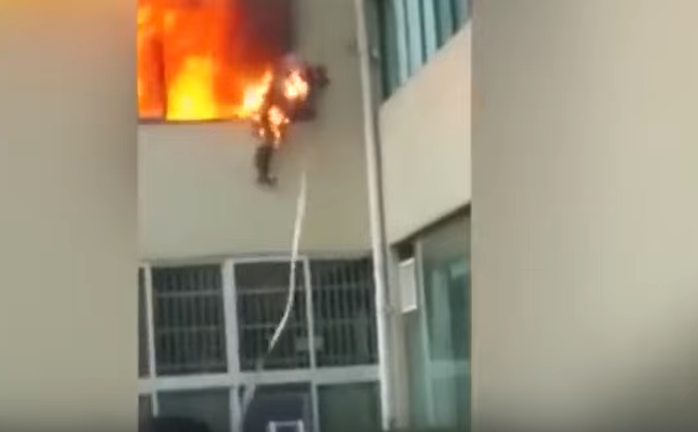 بالفيديو.. النيران تلتهم رجل إطفاء حاول إخمادها