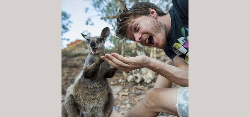 بالصور .. هوايته "السيلفي" مع الحيوانات