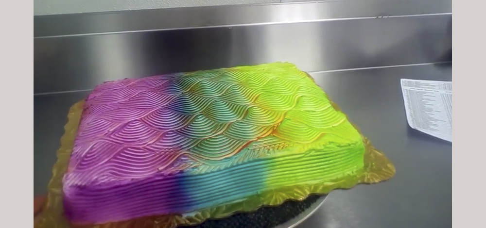 تداول نشطاء على مواقع التواصل الاجتماعي فيديو لكعكة سحرية تتغير ألوانها باستمرار بألوان قوس قزح وتدرجات لونية مختلفة عند النظر إليها من زوايا مختلفة.