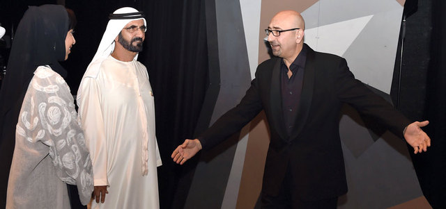 وقال إن سعادته تضاعفت بلقاء صاحب السمو الشيخ محمد بن راشد آل مكتوم، في ختام العرض الأول للملحمة الكبيرة «الفارس»، الذي شرفه سموه بالحضور.