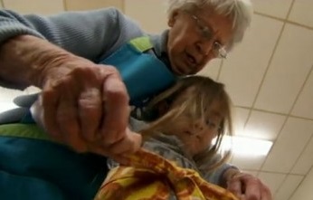وتشرح "الجدّة" عبر الفيديو، سعادتها لتعليم الأطفال، وتضيف: "في المدرسة، يسمّونني الجدة، وأعرف أنهم يحبونني".