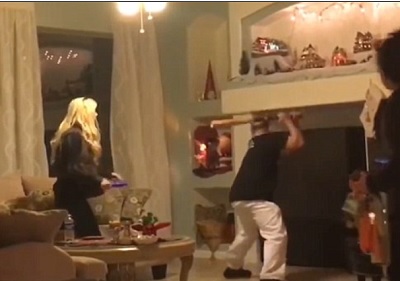 بالفيديو.. يحطم تلفزيون والدته بعصا!!