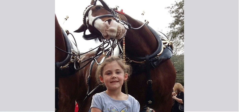 فبينما كانت والدة الطفلة "إليز فرو" تلتقط صورة لابنتها أثناء عطلة في ولاية فلوريدا بأميركا، اقتحم حصان الصورة مستعرضاً إبتسامته العريضة.