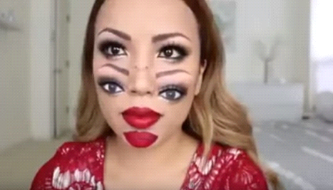 تداولت مواقع تواصل اجتماعي مقطع فيديو يظهر موهبة فتاة في وضع "المكياج" حيث تعيد رسم ملامح وجهها أسفل عينيها وأنفها.