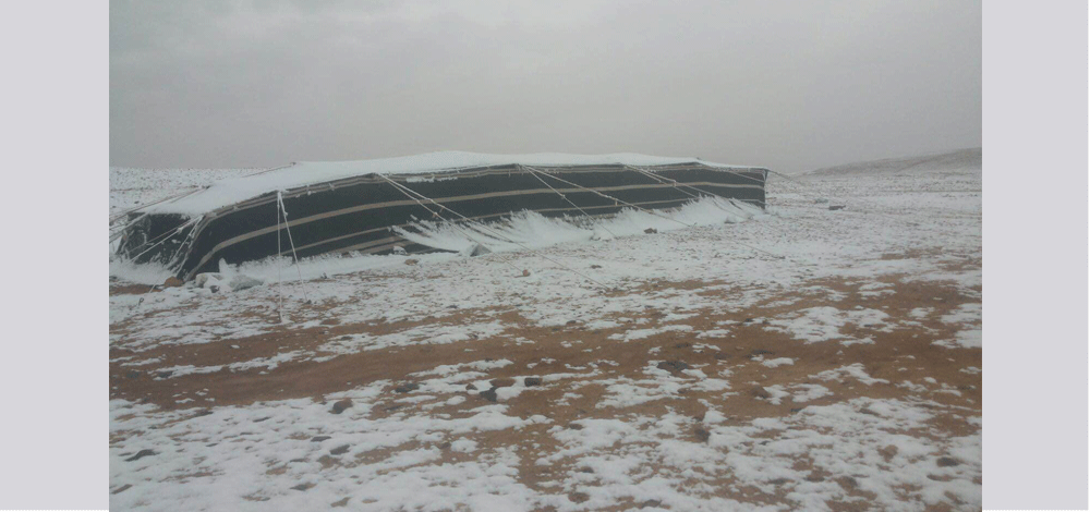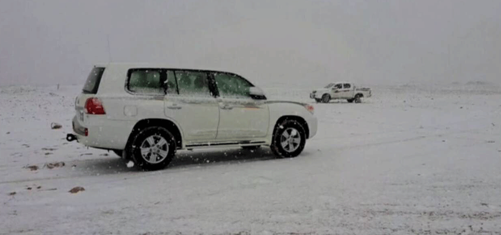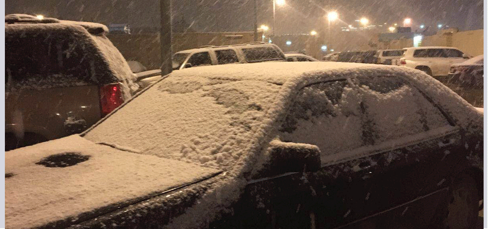 شهدت مدينة عرعر، على الحدود الشمالية الغربية للسعودية، الأربعاء وفجر الخميس، تساقطاً كثيفاً للثلوج.