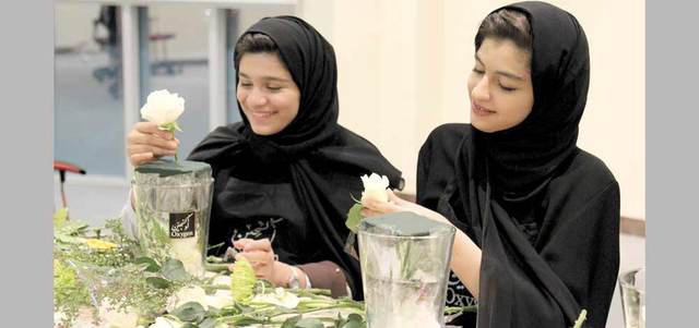 الفتيات تعرفن إلى كيفية «تنسيق الزهور» في ورشة عمل خاصة. من المصدر