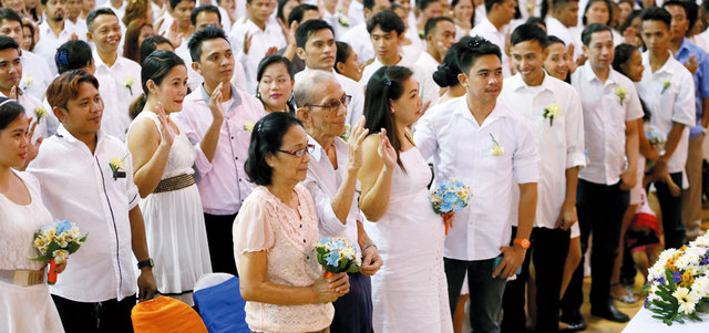 وتقام حفلات الزفاف الجماعية في الفلبين عادة تحت رعاية مسؤولين محليين، بغرض تقنين علاقة شركاء الحياة، الذين ينقصهم المال أو الوقت، لإتمام علاقة الزواج بينهم.