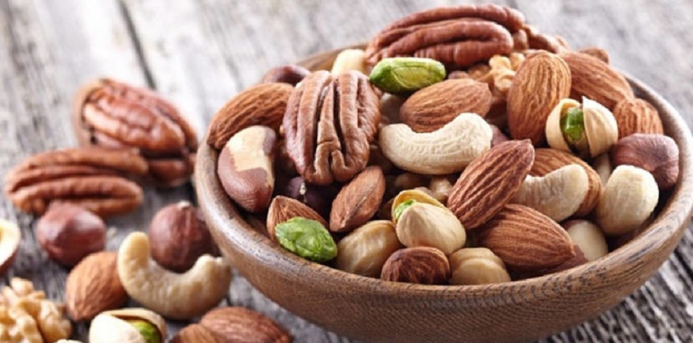 اللوز والجوز والبندق الغنية بالفيتامين E: تحافظ هذه الاطعمة على صحة أغشية خلايا الدماغ دون التأكسد، مصدر شيخوخة الخلايا، ويكفي تناول 5 حبات من اللوز أو الجوز أو البندق كل يوم.