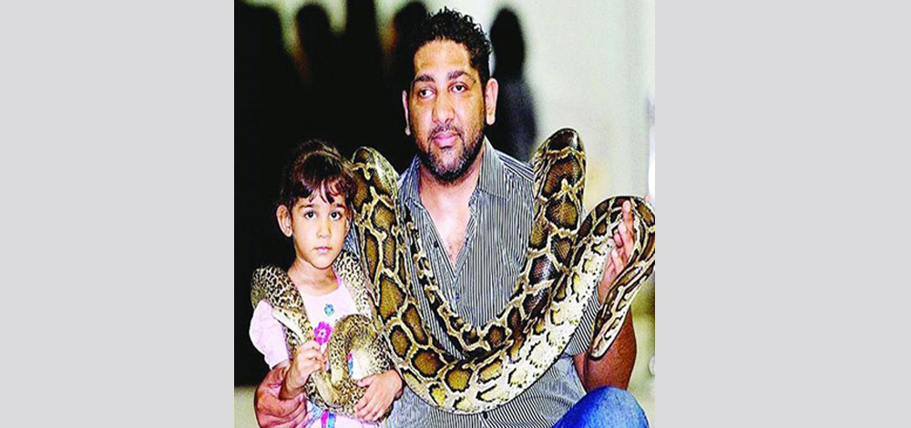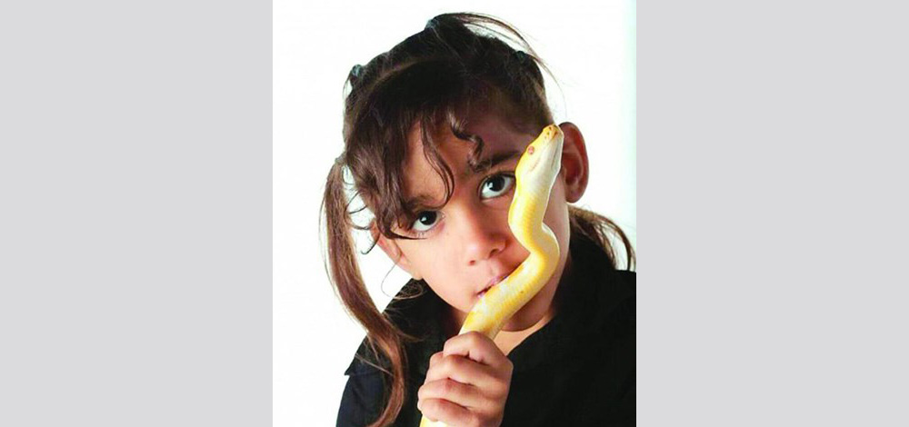 بالصور.. طفلة سعودية تروض أضخم الأفاعي