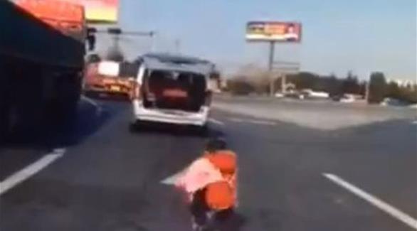 تداول رواد مواقع التواصل الاجتماعي فيديو لطفل سقط فجأة من صندوق سيارة بعد تحركها بلحظات على أحد الطرق السريعة في الصين.
