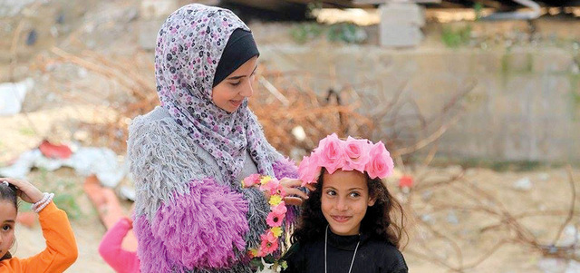 «الإمارات اليوم» رافقت (دانا) في رحلتها الإنسانية، التي ترفع من خلالها شعاراً بعنوان «من وسط الركام تنبت الآمال»، حيث تحول حي الشعف، أكثر أحياء الشجاعية تضرراً، إلى متنزه قضى فيه الأطفال وقتاً مرحاً، والابتسامة لا تفارق ملامحهم، وهو ما بدا واضحاً على وجه الطفل، علي البطش، وأبناء عمه، الذين فقدوا آباءهم وأمهاتهم جراء المجزرة الإسرائيلية التي أودت بحياة 24 من أفراد العائلة. وتقول (دانا)، وهي تتوسط الأطفال الأيتام، إن «صناعة الأكاليل كانت موهبتي منذ الصغر، فكنت أجمع الورود من حديقة منزلنا، لأصنع منها تاجاً جميلاً أضعه على رأسي عندما أذهب إلى المناسبات، وعندما كبرت طورت موهبتي من خلال ابتكار أشياء جديدة وجذابة».