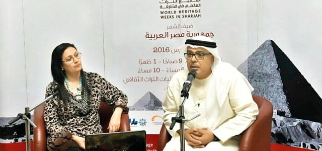 تواصلت فعاليات أسبوع التراث المصري، الذي انطلق الخميس الماضي، في مركز فعاليات التراث «البيت الغربي»، بتنظيم من معهد الشارقة للتراث، ضمن أسابيع التراث العالمي. وتضمنت الفعاليات اللقاء العلمي، الذي بحث خلاله رئيس معهد الشارقة للتراث، عبدالعزيز المسلم، مع رئيسة أكاديمية الفنون بالقاهرة، الدكتورة أحلام يونس، أوجه التعاون بين المعهد ومعاهد الأكاديمية، خصوصاً المعهد العالي للفنون الشعبية، ومركز دراسات الفنون الشعبية.
