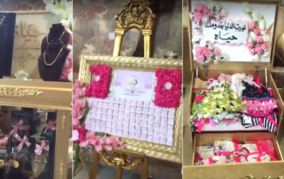 تداولت مواقع تواصل اجتماعي مقطع فيديو يرصد باقة هدايا ثمينة أهدتها سيدة سعودية لصديقتها التي رزقت بمولودة فاسمتها "حياة" على اسم صديقتها، لتقدم لها الصديقة هدايا مذهلة للطفلة والأم وحتى الأب.