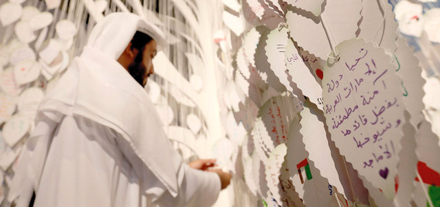 كما امتلأت فروع «شجرة القيم»، التي تشغل أحد أركان الجناح، بكلمات الشكر والتقدير، التي خطها الزوار بمختلف لغات العالم، لدولة الإمارات، ولـ«أم الإمارات».