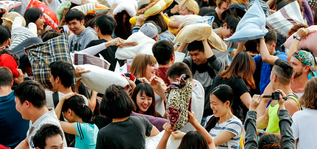«معركة الوسائد» تملأ تايبيه بالسعادة والريش