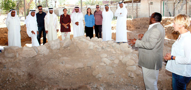 الشامسي والسماحي والدكتورة كريستينا بفيفر ووفد بعثة الآثار الألمانية في موقع المستوطنة البشرية. من المصدر