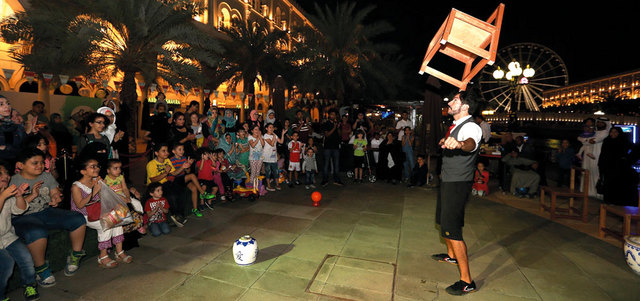 أما الفنان الفنزويلي كاتاي سانتوس، فقد تمكن من إبهار جمهور المهرجان الذي يقام تحت شعار «نكهات عديدة.. مهرجان واحد»، من خلال ما يمتلكه من قدرة على موازنة الأشياء، وموهبته في المزج بين الرقص المعاصر والألعاب البهلوانية، التي ترسم الابتسامة على وجوه الأطفال الذين يجتمعون حوله أينما حط في وجهات المهرجان الأربع. سانتوس معروف بخفة دمه ورشاقته على المسرح، وبقدرته على حمل الكراسي على رأسه، أو الصعود عليها بطريقة تحبس الأنفاس، وهو ما يجعله حديث زوار المهرجان.