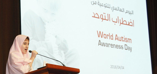 بدأ الحفل بعزف أحد المصابين باضطراب التوحد للنشيد الوطني، ثم استمع المشاركون إلى تلاوة عطرة لسورة «عمّ»، بصوت الطفلة يارا خربوطلي المصابة باضطراب التوحد أيضاً، بعد ذلك تحدث نائب رئيس مجلس إدارة جمعية الإمارات للتوحد، سالم الحوسني، في محاضرة مطولة عن التوعية باضطرابات التوحد، عرّف فيها التوحد بأنه اضطراب سلوكي يظهر لدى الأطفال، واستعرض تاريخ التوحد، والشخصيات المشهورة في العالم التي ظهرت عليها اضطرابات التوحد في مرحلة الطفولة، واستطاعت تخطي عقباته وتابعت حياتها بأسلوب لا يختلف عن بقية البشر، بل واستطاعت أحياناً أن تخلّد اسمها في سجل المميزين والمبدعين.