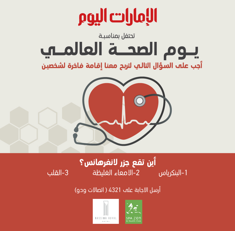 احتفالاً بـ"يوم الصحة العالمي" تقدم الإمارات اليوم للقراء فرصة ربح إقامة فاخرة لشخصين.