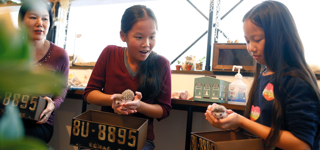 زوار المقهى يقضون ساعات يلعبون خلالها مع القنافذ. رويترز