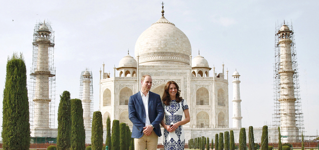 زار الأمير وليام نجل ولي العهد البريطاني، وزوجته كيت، تاج محل، أمس، في نهاية جولتهما في جنوب آسيا التي استمرت أسبوعاً. وجلس دوق ودوقة كمبردج جنباً إلى جنب في المكان نفسه الذي التقطت فيه الصورة الشهيرة لوالدته الراحلة في عام 1992.