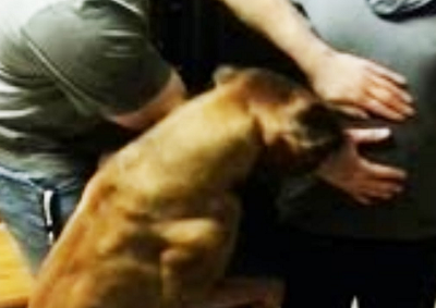 بالفيديو.. كلب في غاية الوفاء لامرأة حامل