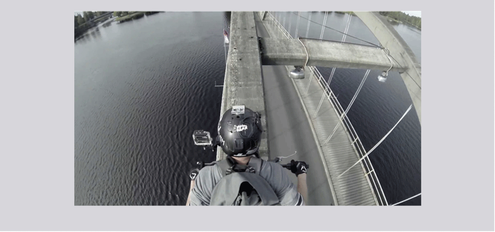 انتشر فيديو يخطف الأنفاس على موقع يوتيوب يُظهر شابا متهورا يستخدم كاميرا "gopro" لتصوير لقطات له وهو يقود دراجته أعلى سور لأحد الجسور المعلقة.