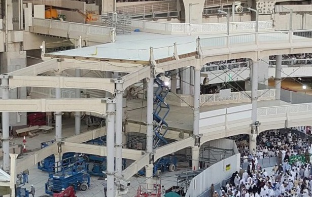 تواصل الرئاسة العامة لشؤون المسجد الحرام والمسجد النبوي اشرافها على أعمال إزالة جسر المطاف المؤقت بالمسجد الحرام التي بلغت ما يقارب 90% حتى الآن.