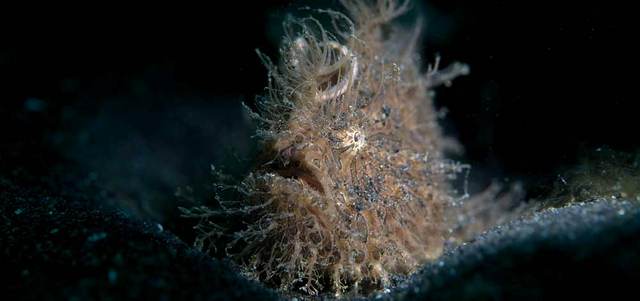 يعتبر الغطس الليلي موضوعاً شيّقاً ومخيفاً لكثير من المصورين، فمن الناحية التشويقية فالكثير من السلوك البحري لا يلاحظ إلا من خلال الغطسات الليلية، وفي الوقت نفسه لا يعلم الغواص ماذا ينتظره في الماء. صورة للسمكة الضفدع ذات الشعر وهي في حال ترقب للفريسة.. منطقة لمبي في إندونيسيا