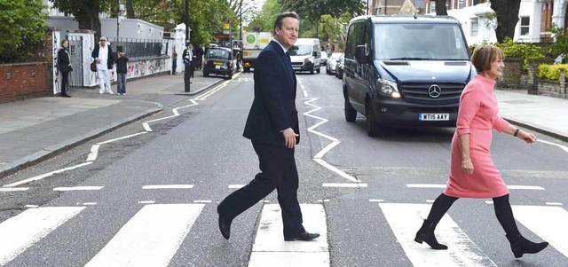 سعى رئيس الوزراء البريطاني، ديفيد كاميرون، إلى تقليد غلاف ألبوم «آبي رود» لفرقة البيتلز، أول من أمس، وسار على نقطة عبور زيبرا الشهيرة، خلال زيارته لاستوديوهات الفرقة، للقاء أعضائها الداعمين لبقاء بريطانيا في الاتحاد الأوروبي.
