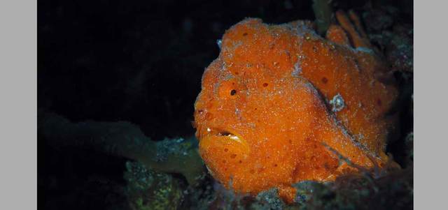 السمكة الضفدع أشد أنواع الأسماك مكراً وقدرة على التخفي، وهي سمكة محاربة تعيش في قاع البحر بين الطحالب والإسفنج، ولها فوق ظهرها أربع شوكات سامة، كما أن غطاء خياشيمها يُحدث جروحاً مؤلمة، لكنها غير قاتلة، وعندما تتغذى تفتح فمها بحجم يزيد على حجمه الطبيعي بنحو 12 مرة، وهي تسبح بسرعة كبيرة مستخدمة زعنفة الذيل، فتبدو كأنها تمشي في الماء. تستطيع السمكة الضفدع التخفي بطرق عدة عندما يهاجمها أعداؤها، فيمكنها تغيير لونها بسرعة، فيصعب التمييز بينها وبين البيئة المحيطة بها، كما أنها تُخرج من رأسها أهداباً طويلة تشبه الدود تجذب بها فرائسها وتقضي عليها، كما يمكنها تنقيط نفسها، ويوجد نحو 200 نوع من أسماك الضفدع. (الصورة للسمكة الضفدع البرتقالية في حالة تمويه قوي لانتظار فريستها، التقطتُها في غطسة ليلية في منطقة لمبي الإندونيسية).