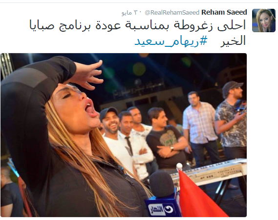 بعد اعلان المحكمة براءة الاعلامية والمذيعة ريهام سعيد في القضية التي اشتهرت باسم “فتاة المول”،وعودة برنامج صبايا الخير لم تستطيع سعيد تمالك نفسها وأطلقت ريهام زغرودة سمتها على صفحتها في مواقع التواصل "أحلى زغرودة".