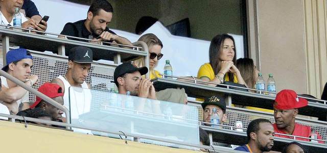 وظهر نيمار في مدرجات استاد «روز بول» بمدينة باسادينا الأميركية مرتدياً قميصاً أبيض وغطاء رأس، وظل يشجع الفريق بحرارة مع كل فرصة تسنح له، ولكن المباراة انتهت بالتعادل السلبي. ورافق نيمار في المدرجات كلٌ من الممثل جيمي فوكس، والمغني الشهير جاستن بيبر، والبريطاني لويس هاميلتون بطل العالم لسباقات سيارات فورمولا1.