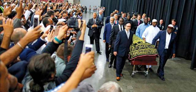 ودفن الملاكم، الذي عرف برشاقة الخطى كراقص بقبضتين من فولاذ، في مسقط رأسه في منطقة أذلته ثم مجدته، فيما بذلت لويفيل البالغ عدد سكانها 600 ألف نسمة جهوداً مكثفة لتكون على مستوى الحدث.