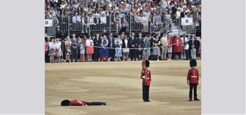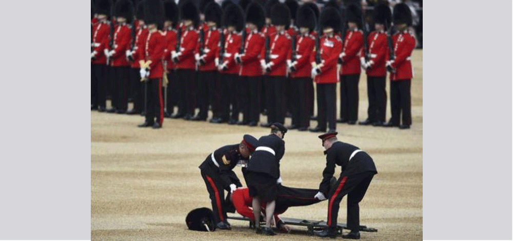 بالصور.. انهيار جندي أثناء احتفالات ملكة بريطانيا بعيد ميلادها