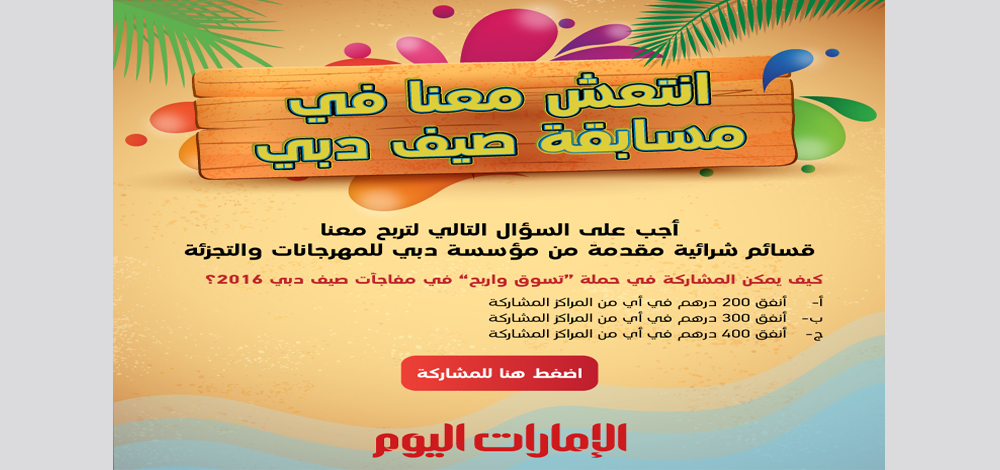 تقدم صحيفة "الإمارات اليوم" بالتعاون مع "مفاجآت صيف دبي" فرصة ربح جوائز قيمة لمتابعيها.