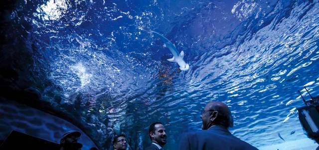 مشهد من افتتاح فعاليات «أسبوع ديسكفري للقرش»، الذي يقام في «دبي أكواريوم»، وحديقة الحيوانات المائية في «دبي مول»، ويحمل المعرض مجموعة من الشاشات التفاعلية، التي تتيح للحضور التعرف إلى القرش، والخصائص التي يحملها هذا الكائن، وكذلك البيئة التي يعيش فيها، إلى جانب التعريف بأنواع جديدة من هذه الأسماك.