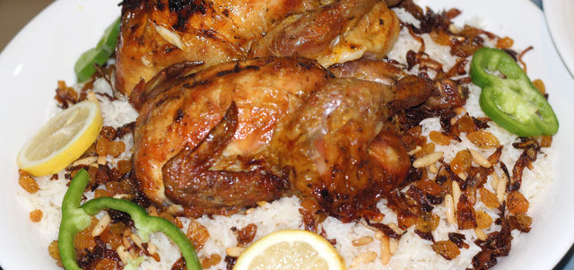تقلى قطع الدجاج بزيت السمسم جيداً، ثم يضاف لها القليل من ماء سلق المعكرونة، ويضاف لها عشبة الليمون وتتبّل بخليط الفلفل الأحمر والملح، وتترك حتى تنضج، ويضاف لها الحبق والثوم، عند التقديم توضع المعكرونة في طبق ويسكب فوقها خليط الدجاج.