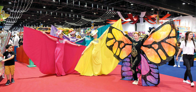 تجوب الفراشات قاعات «عالم مدهش» وهي ترتدي أزياء بألوان ساحرة تلمع أمام أعين الأطفال الذين يتجمهرون حولها ليلتقطوا الصور التذكارية. من المصدر
