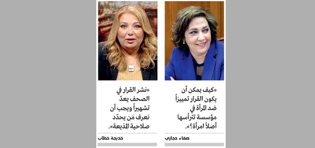 ودان مركز المرأة للإرشاد والتوعية القانونية قرار منع المذيعات ووصفه بـ«المعيب»، معتبراً أنه «مخالف لنصوص الدستور»، الذي يحظر التمييز ضد المرأة. واعتبرت خديجة خطاب، واحدة من المذيعات اللاتي شملهن القرار، أن «نشر هذا القرار في الصحف يعدّ تشهيراً بالمذيعات».