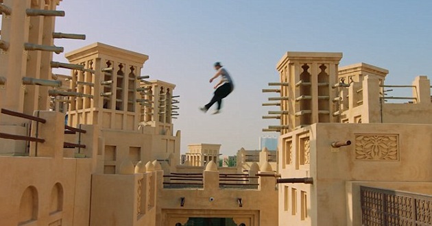بالفيديو.. مغامرة القفز الحر فوق أسطح مدينة جميرا