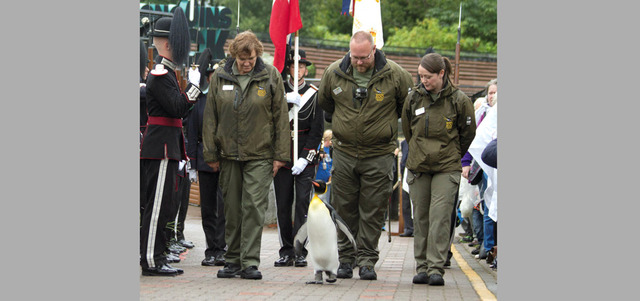 وجرى تكريم السير نيلز أولاف - وهو بطريق ملكي مقيم في حديقة حيوانات إدنبره - بمنحه رتبة «بريجادير» أثناء موكب في المنتزه الأسكتلندي. والبطريق هو تميمة حرس ملك النرويج، وحصل على لقب فارس في 2008.
