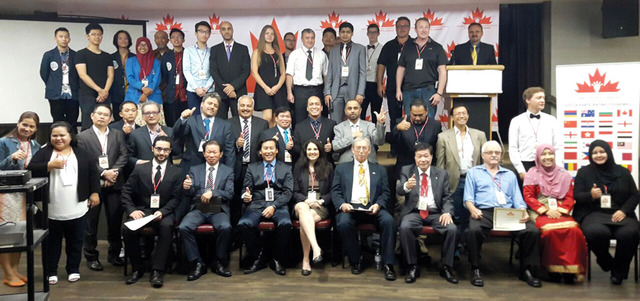 أحمد مجان متوسطاً عدداً من المخترعين من أنحاء العالم في المسابقة التي تفوق فيها واستضافتها العاصمة الكندية. من المصدر